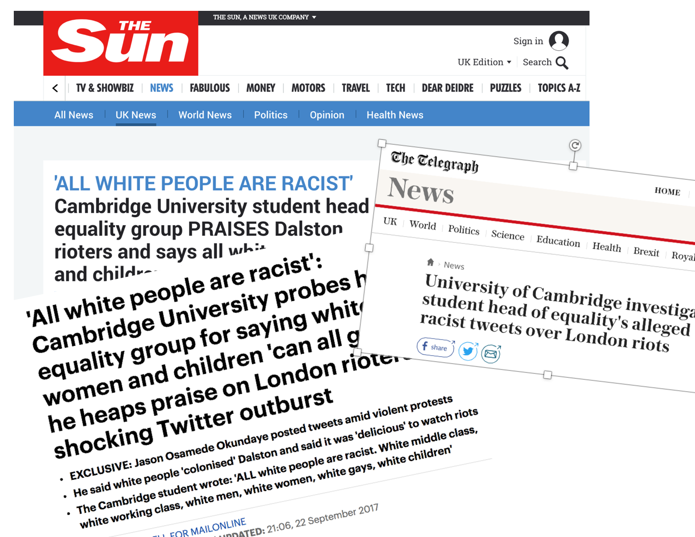 In 2017 Cambridge student, Jason Okundaye, posted a tweet saying: