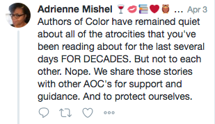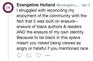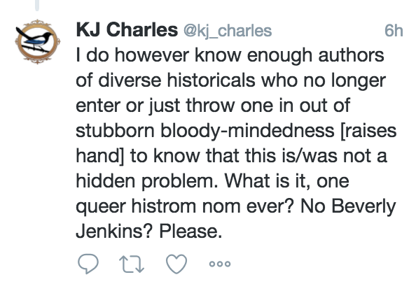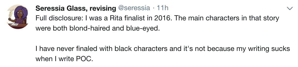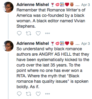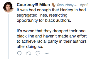 Courtney Milan’s thread on the experiences of authors of colour at the 2016 RWA conference.